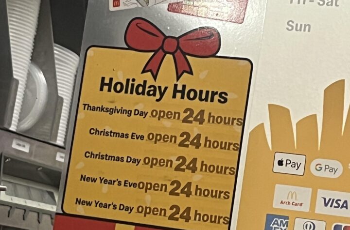 McDonald’s on Christmas Eve closes much later than usual, offering a convenient dining option...